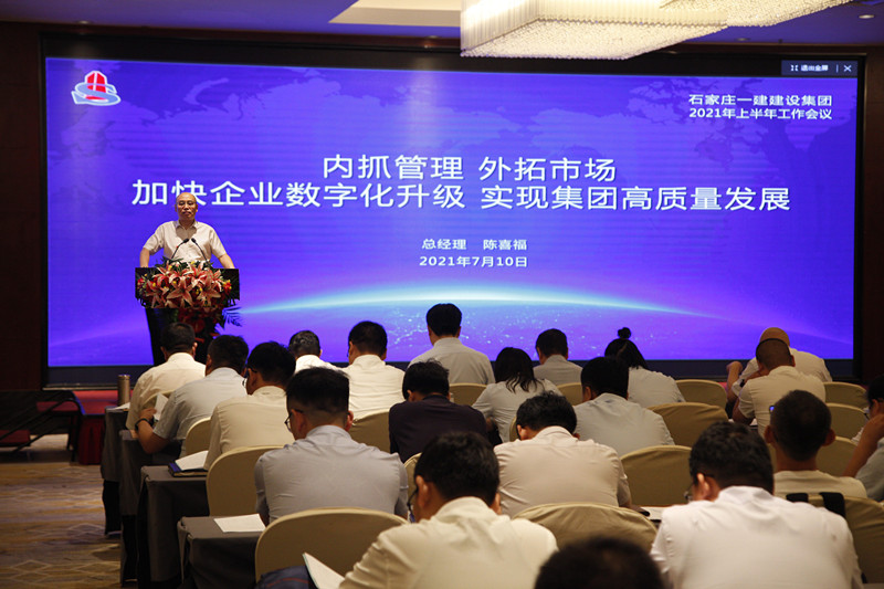 集团总经理陈喜福在会上作了《内抓管理、外拓市场,加快企业数字化升级,实现集团高质量发展》的工作报告,全面、客观的总结了上半年的工作,汇报了今年年初提出的“4211”发展规划及布置的九项主要工作目标的完成情况,规划务实,举措得力,责任明确。同时在成绩面前,也看到不足之处:经营开发任务距目标差距较大,项目部人员缺乏,企业数字化能力不高等等。