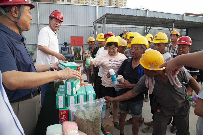 工会主席王庆九介绍:“入伏以来,持续的高温给施工作业人员带来严峻的考验,为切实维护广大职工劳动权益,保障施工作业安全,工会将集中开展一系列“送清凉、送关怀、保安全”为主题的慰问活动。”