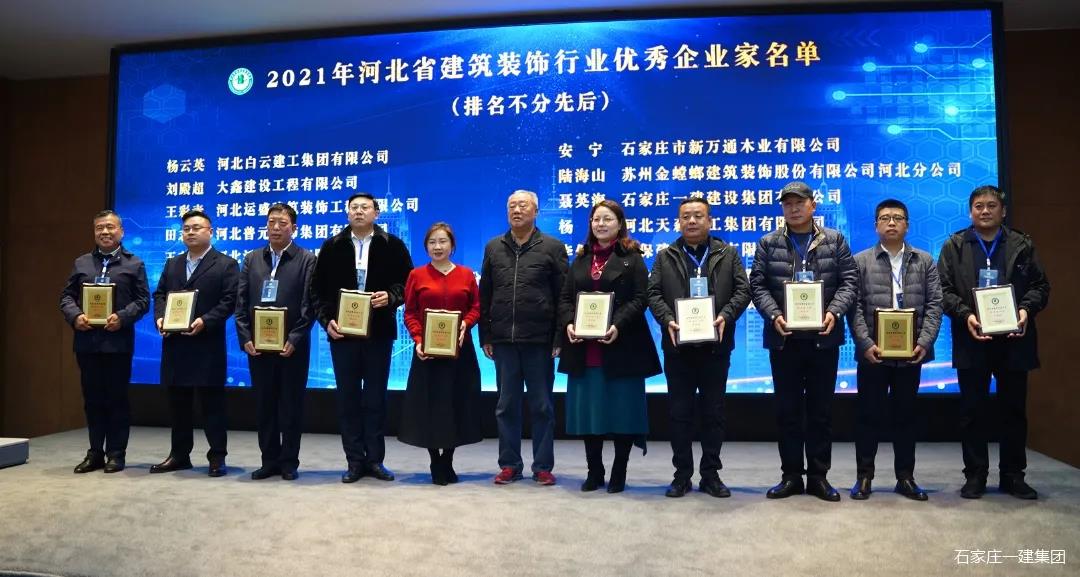 在2021年12月17日刚刚召开的河北省建筑装饰业协会三届二次理事会暨常务理事会上,石家庄一建集团董事长聂英海获评2021年河北省建筑装饰行业优秀企业家荣誉称号,集团荣获2021年度河北省建筑装饰行业先进企业等多项行业荣誉。