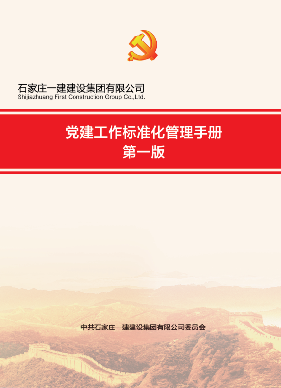 为进一步推进党建工作标准化,共享党建工作先进经验,石家庄一建集团特印发《石家庄一建集团党建工作标准化管理手册》,用以指导和规范基层党组织各项工作。